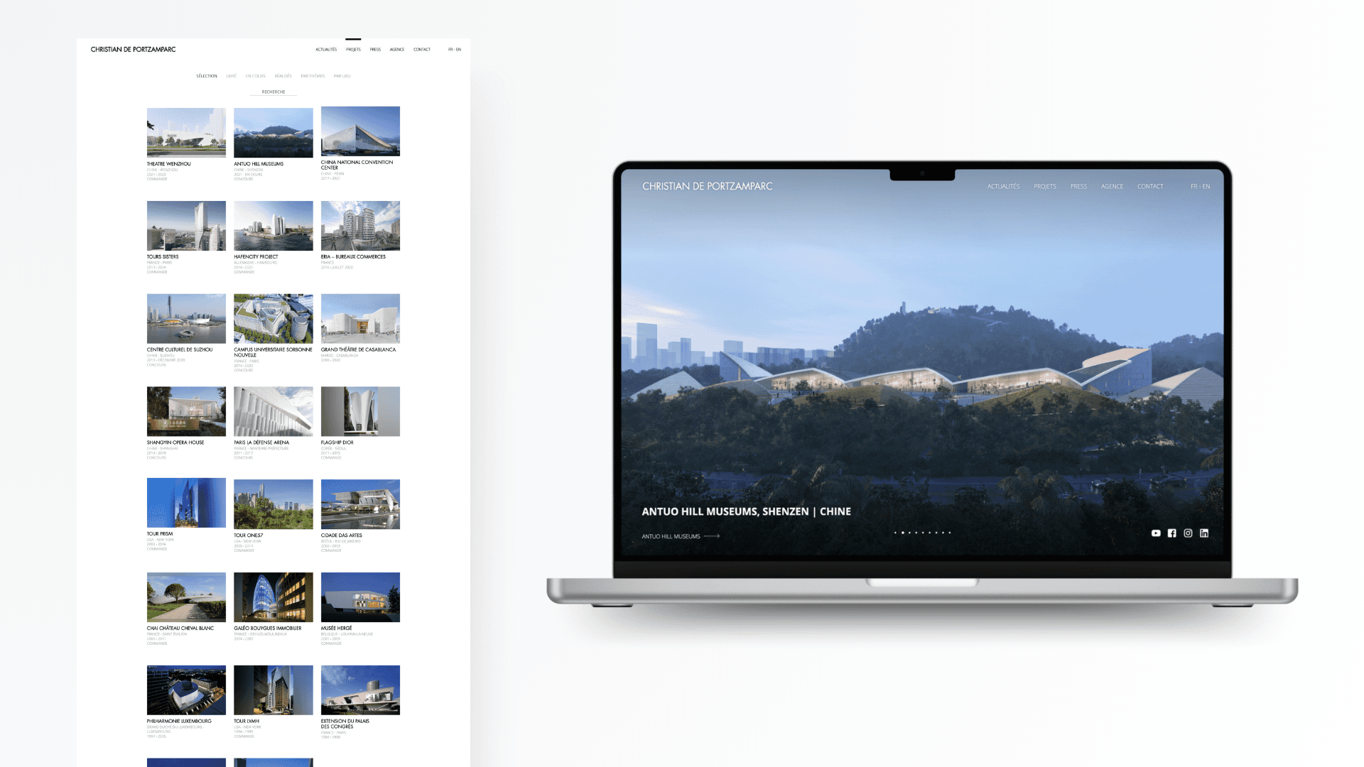 In 2021, during my final internship at the architecture agency of Christian de Portzamparc, I joined the communication department as a graphic designer. Although it had great international renown, its digital communication remained limited and poorly optimized to enhance its personal brand image and recent projects.