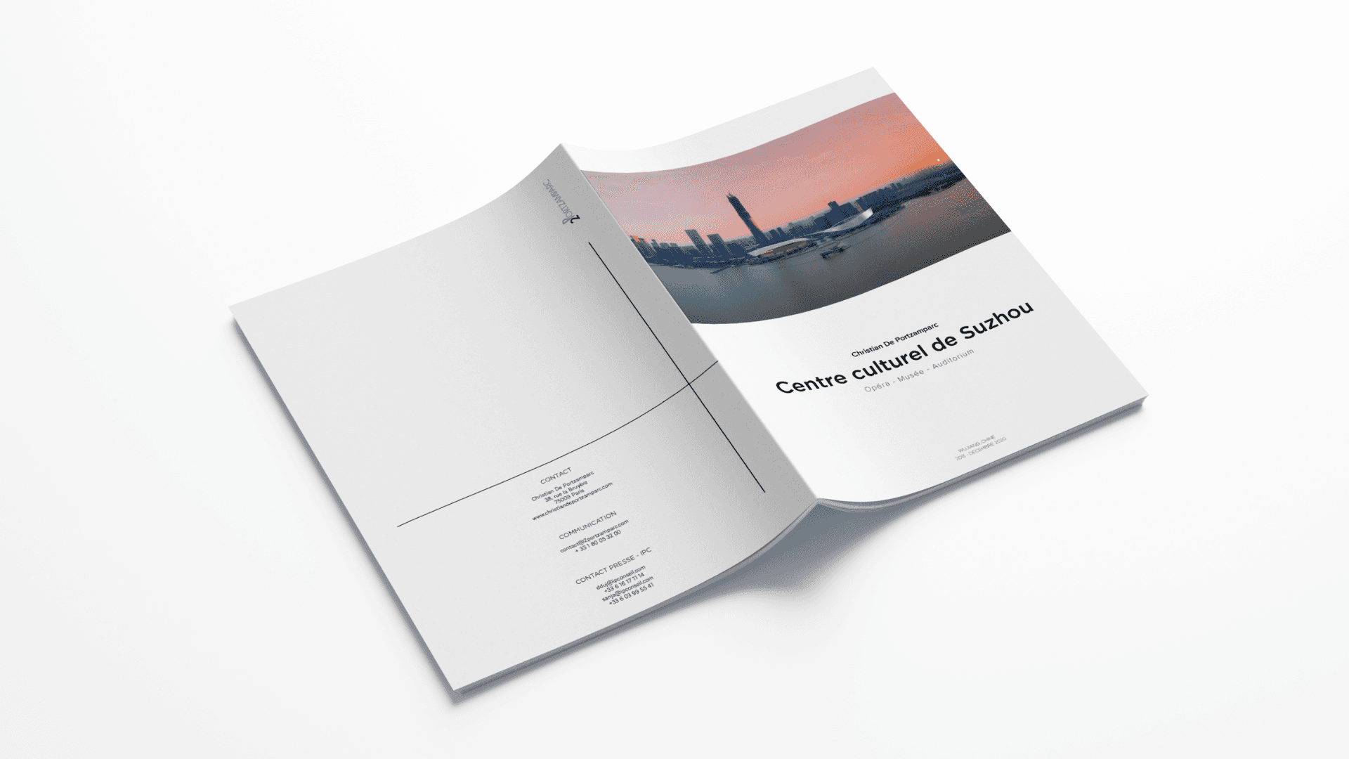 For the project of the Suzhou Cultural Center, I designed a booklet highlighting the architecture and vision of the project while optimizing its presentation for the press, patrons, and clients. Usually, the booklets were printed in two distinct versions, one in French and the other in English.
