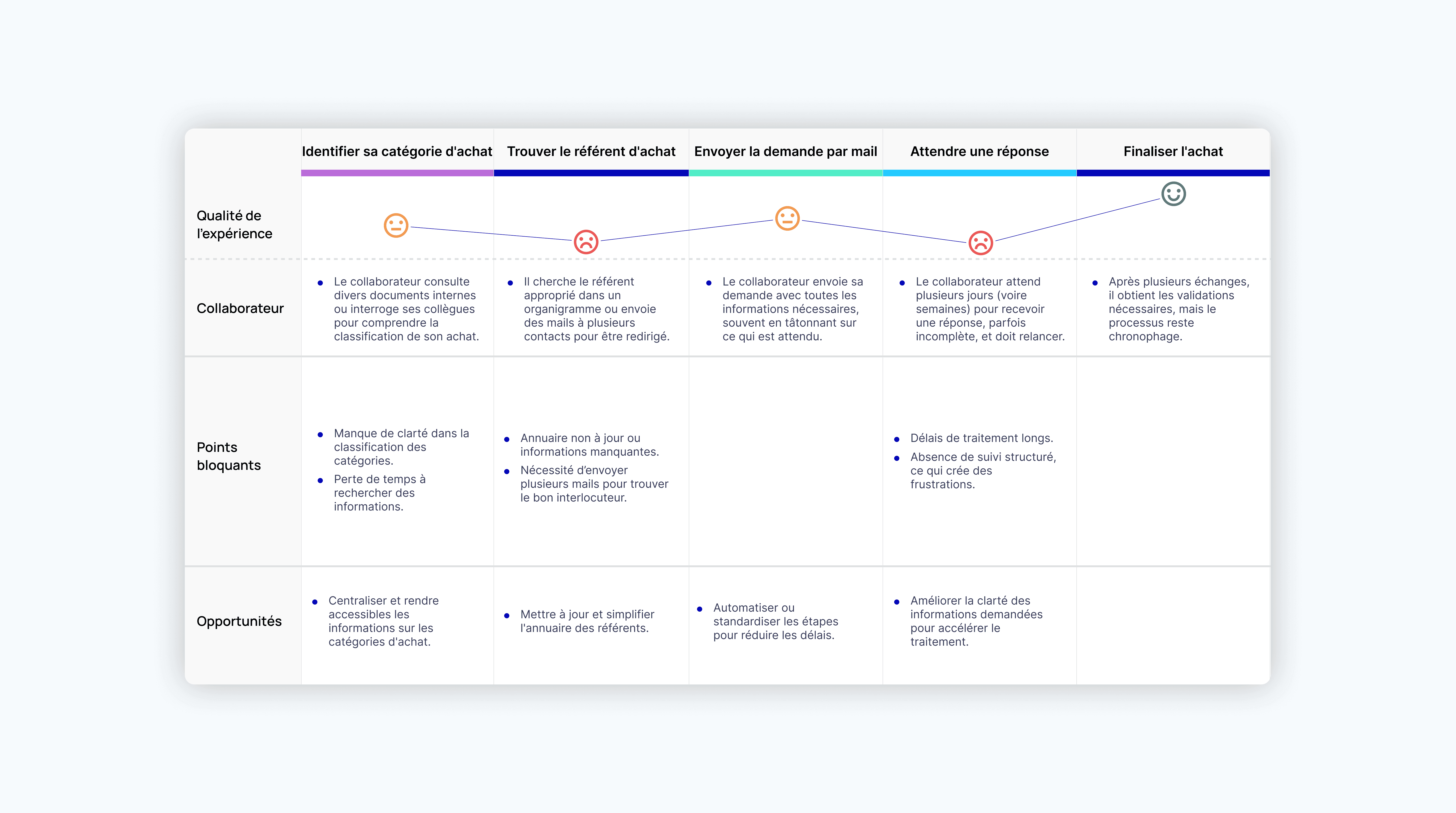 Manque de clarté dans les interlocuteurs : Trouver le bon référent achat pour une catégorie ou un budget donné demandait beaucoup de temps et d’efforts.